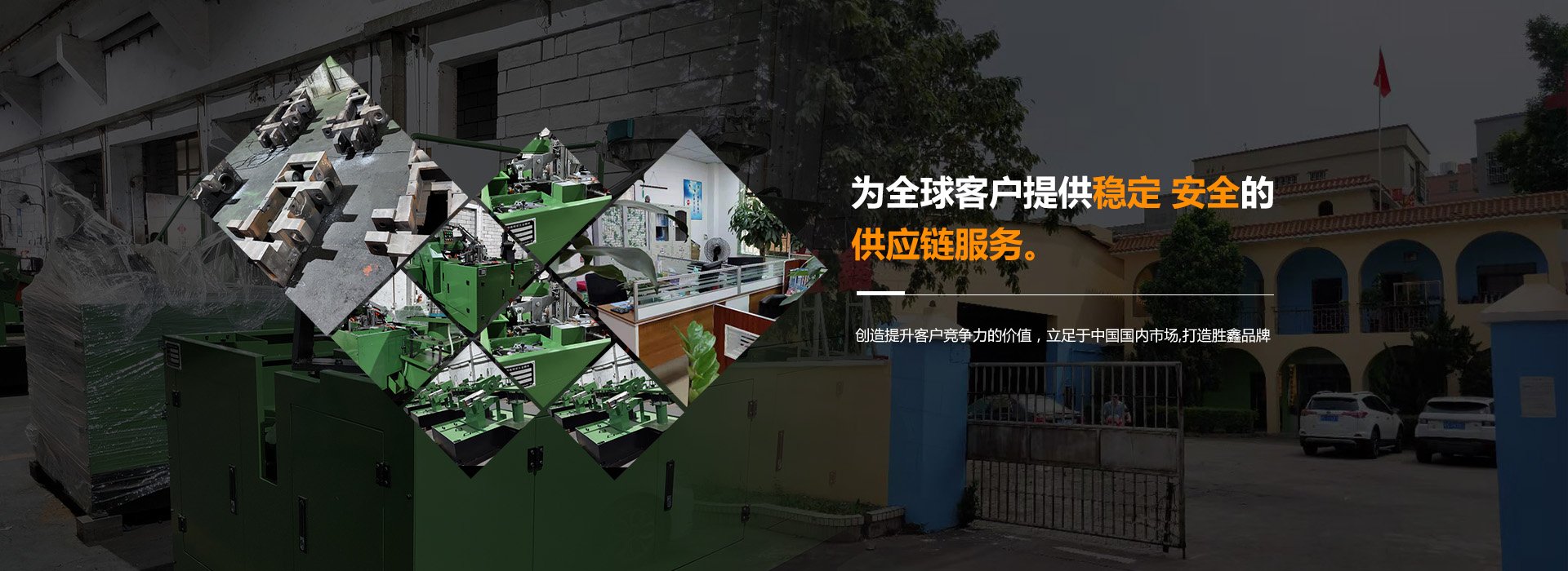 東莞市勝鑫五金機械有限公司成立于2013年,是一家集設計開發、生產制造,質量管控,物流平臺于一體緊固件生產設備整體解決方案綜合性企業。本廠擁有經驗豐富專業機械設計開發團隊及配置高精密度的加工、質量控制設備用于精密機械制造。本公司專業制造合模機、開合模機、打頭機、冷鐓機、搓牙機、一模二沖打頭機、四模四沖螺絲成型機等緊固件生產設備并提供各機型配件生產支持,以經驗豐富的專業設計及以先進生產技術,優質服務,提供適合客戶需求的各類緊固件生產設備,設備廣泛使用于各類緊固件生產,并可根據客戶要求,為客戶設計制造各種非標螺絲機械,并提供調試,配件供應及專業維修服務。結合客戶的個性化需求,真誠服務。以長期、穩健、創新的經營風格,精密的專業技術、優質的產品、準時的納期,建立了良好的評價與信譽,受到了新老客戶的廣泛支持、肯定與信賴。 創造提升客戶競爭力的價值,立足于中國國內市場,打造勝鑫品牌,為全球客戶提供穩定的安全的供應鏈服務。